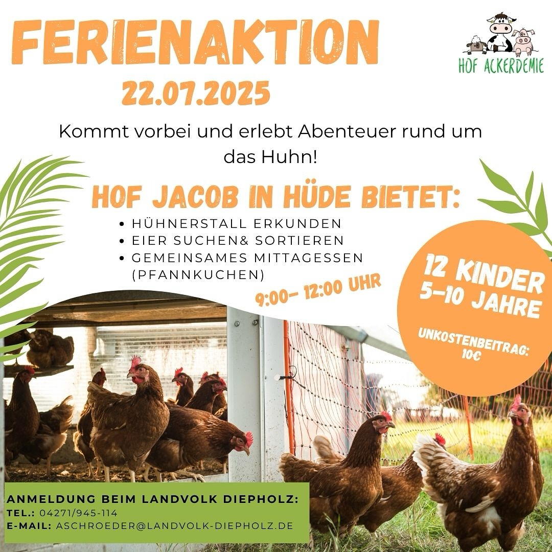 Bei der Sommerferienaktion der Hof Ackerdemie bekommt ihr einen tollen Vormittag auf dem Hof geboten. Neben einer Hofführung dürft ihr auch Eier suchen und sortieren und euch beim Mittagessen kräftig stärken!